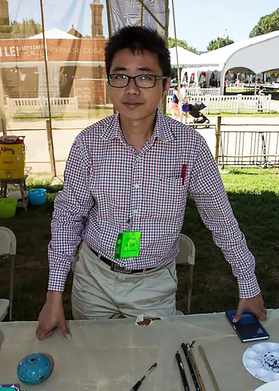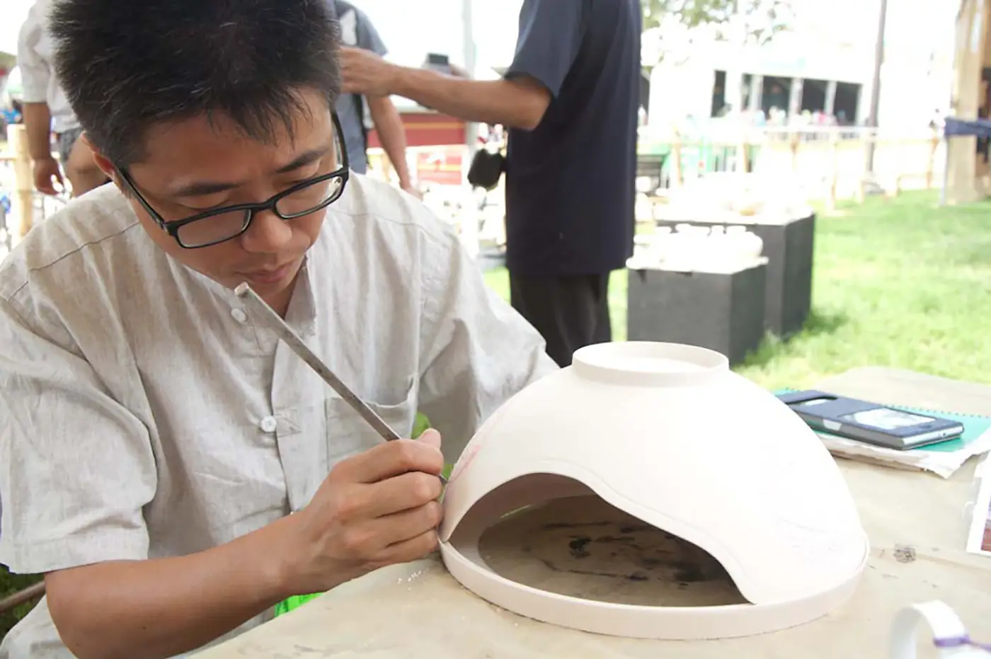 Sun had traveled to Washington to participate in the 2014 China: Tradition and the Art of Living program. He is the fourth generation of his family to be involved with ceramics production in Jingdezhen, China—a famous center of porcelain production since the eleventh century. He is a surface decorator who paints and carves. The exquisitely thin bowl he carried to Washington to decorate was made by Yuan Lin Jiang.