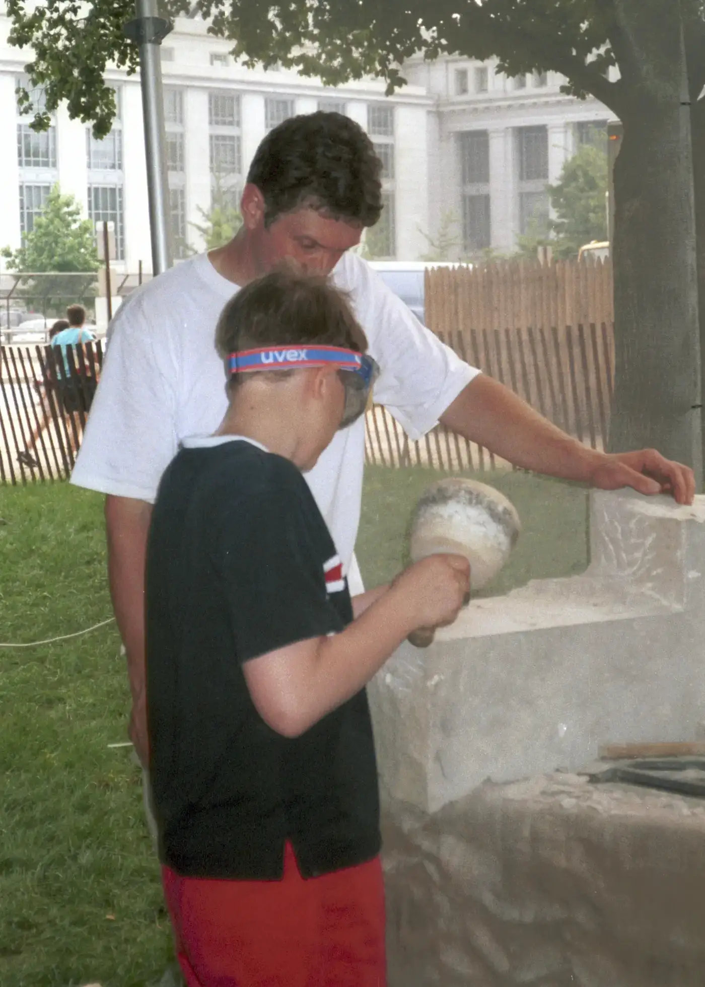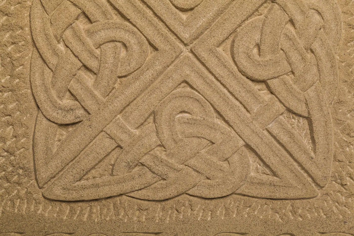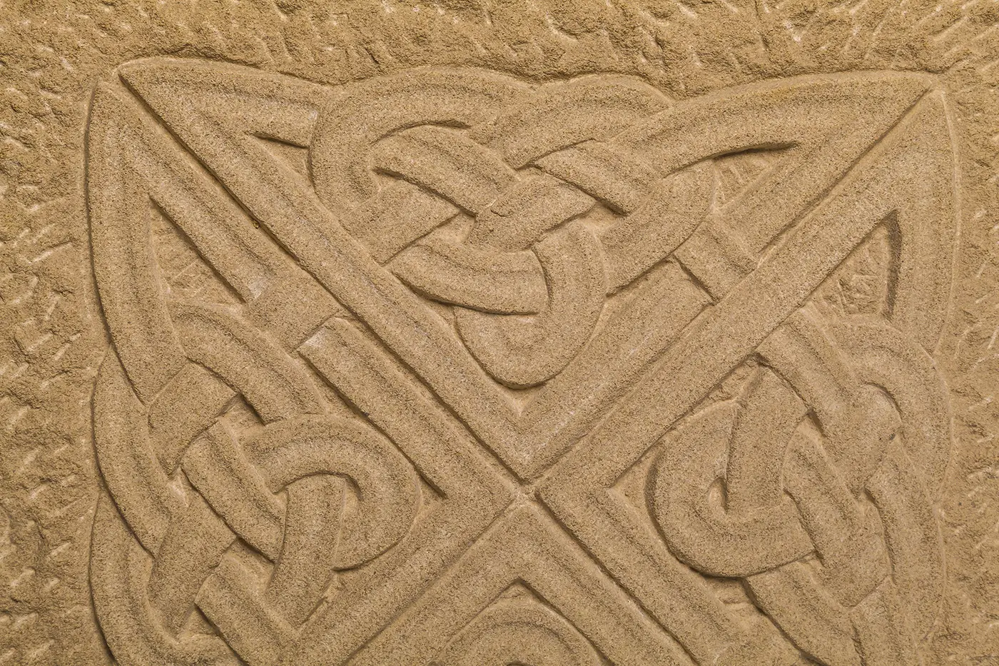 Stonemason Andrew Bradley created this beautifully carved memorial stone on the National Mall during the 2003 Festival’s Scotland at the Smithsonian program. Featuring an intricately chiseled Celtic knot on top and the program title and year in bold lettering on the bottom, it is made from Stanton Moor sandstone from Derbyshire, England, and inspired by an ancient standing stone in Northeast Scotland. Human-made standing stones—menhir—were created throughout western Europe during the mid-Bronze Age (2100–1500 BCE). Over 50,000 of them have been documented in the United Kingdom.
