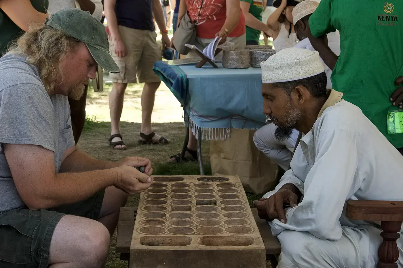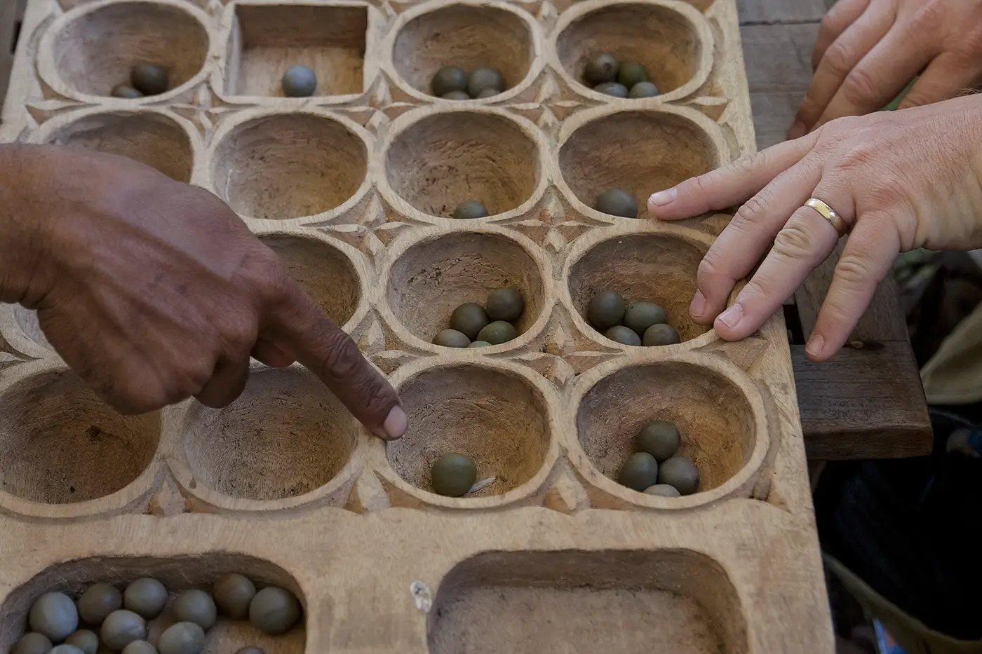 Much like checkers or chess games played in city parks across the Americas and Europe, bao games are set up for two players and often attract passing observers. The ancient game is math-based and strategic, requiring concentration; it’s also an engaging way to pass the time.