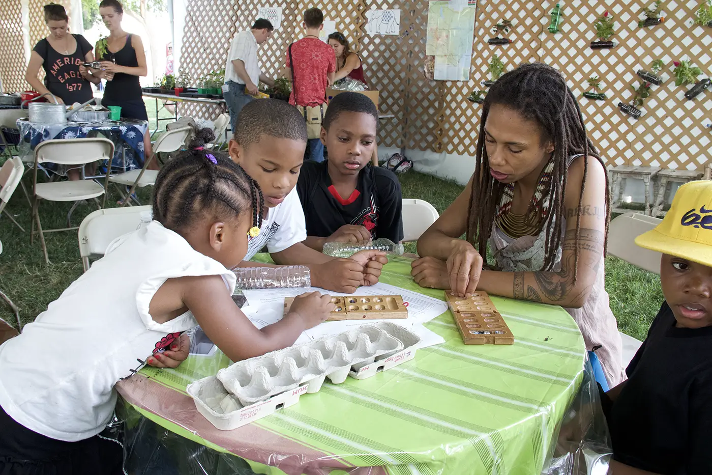 The Kenya: Mambo Poa program was arranged to reflect the pastoral, urban, and coastal environments within the country. Visitors to the coastal area were drawn to the weathered dhow from Lamu Old Town on the coast of Eastern Kenya and could watch as it was transformed into a sea-worthy vessel under the direction of Ali “Skanda” Ali.
