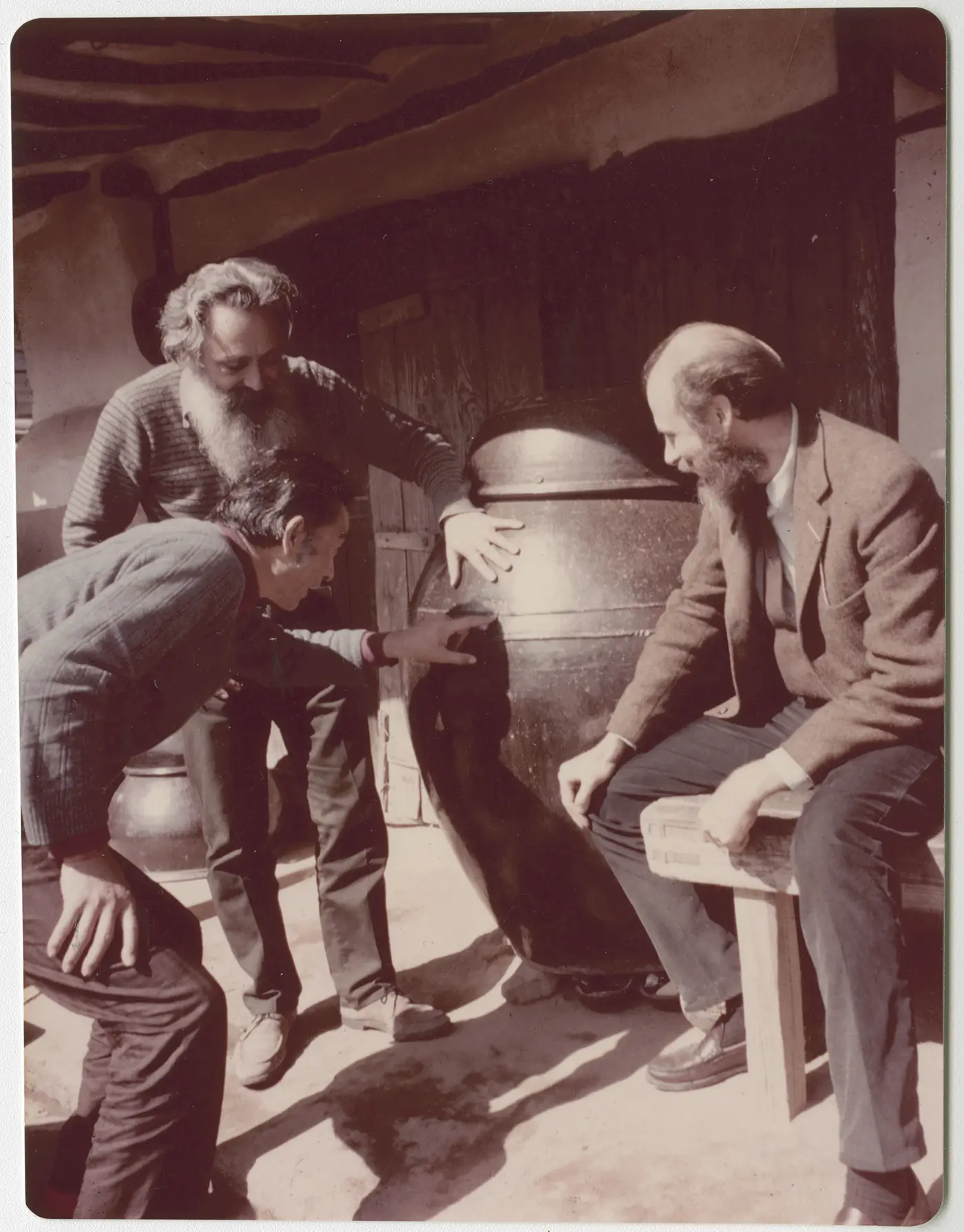 The onggi making industry was little known and poorly documented outside of Korea until the early 1970s. On his first trip to Korea in 1971, Folklife Festival director Ralph Rinzler was captivated by the large, lidded jars he saw clustered outside village homes. He returned the next year to do more research and again a decade later with anthropologist Robert Sayers as they prepared for the 1982 Korea-USA Centennial program. In the ten years since his first visit, Rinzler found that Korea had modernized and many of the rural pottery sites were consolidated or gone altogether. He also noted a sharp decline in apprentices learning the trade, even as collectors were beginning to purchase the older onggi.