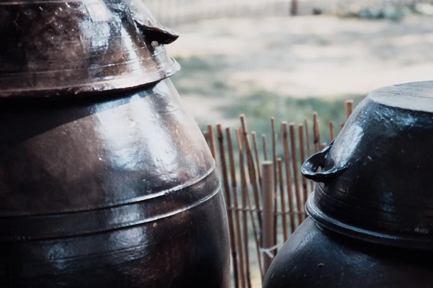 For centuries, onggi were essential to preparing and storing the core staples of the Korean diet: soybean and red chili paste, spicy kimchi, and more. The low-fired earthenware has a distinctive porosity that allows oxygen to enter without letting liquids evaporate, aiding the fermentation process required for these foods and condiments. With that trait, onggi has persisted for hundreds of years, even after the introduction of commercial wares and refrigeration.