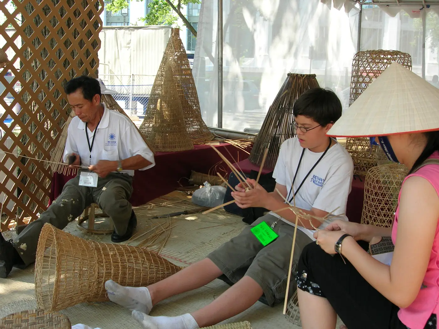 Seven fish trap makers from four countries—Laos, Cambodia, Vietnam, and Thailand—participated in the 2007 Folklife Festival program Mekong River: Connecting Cultures. Four years of collaborative fieldwork by Festival curators and host-country specialists resulted in detailed documentation now stored in the Center’s Ralph Rinzler Folklife Archives and Collections. These resources document the impact of development between 2004 and 2007.