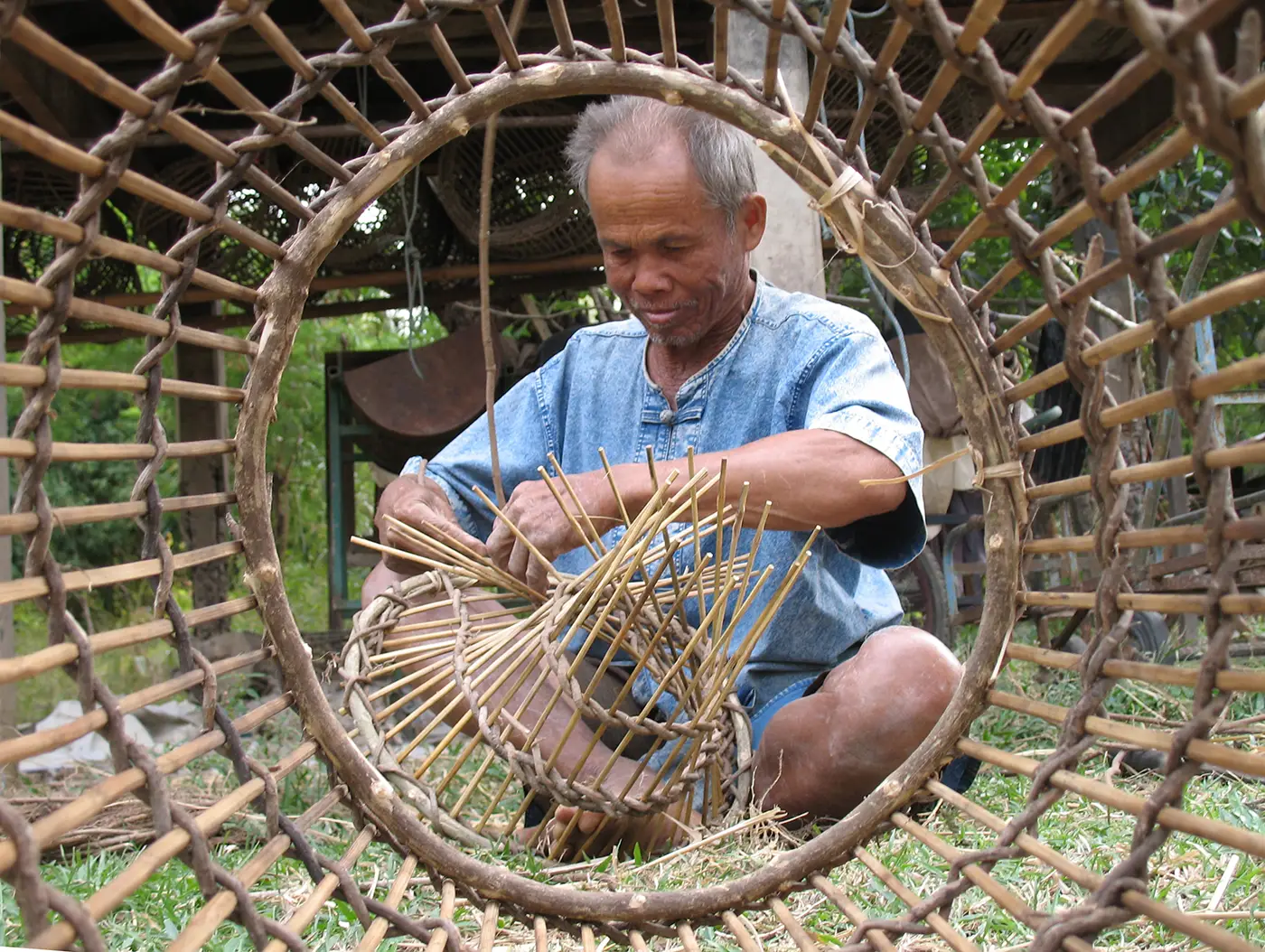 The research also helped planners envision how to set up the Festival grounds. At the Festival, the participating craftspeople worked alongside one another and took turns demonstrating trap making techniques and discussing the interplay between biodiversity, natural resources, and their cultural practices. For most, making the traps provided an important supplement to their incomes, and the fish they caught enriched the family diet.