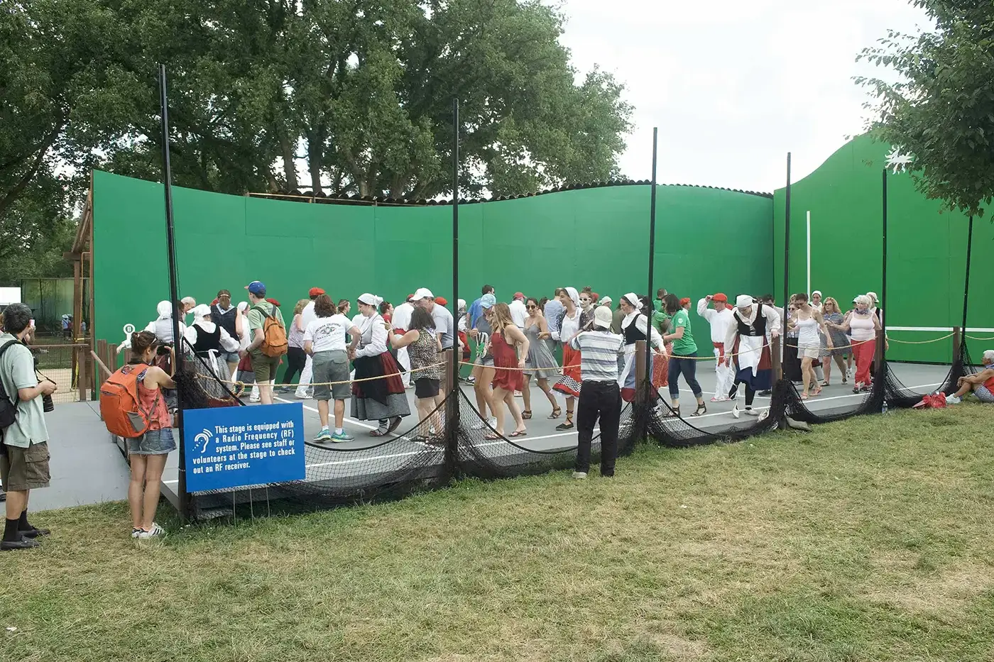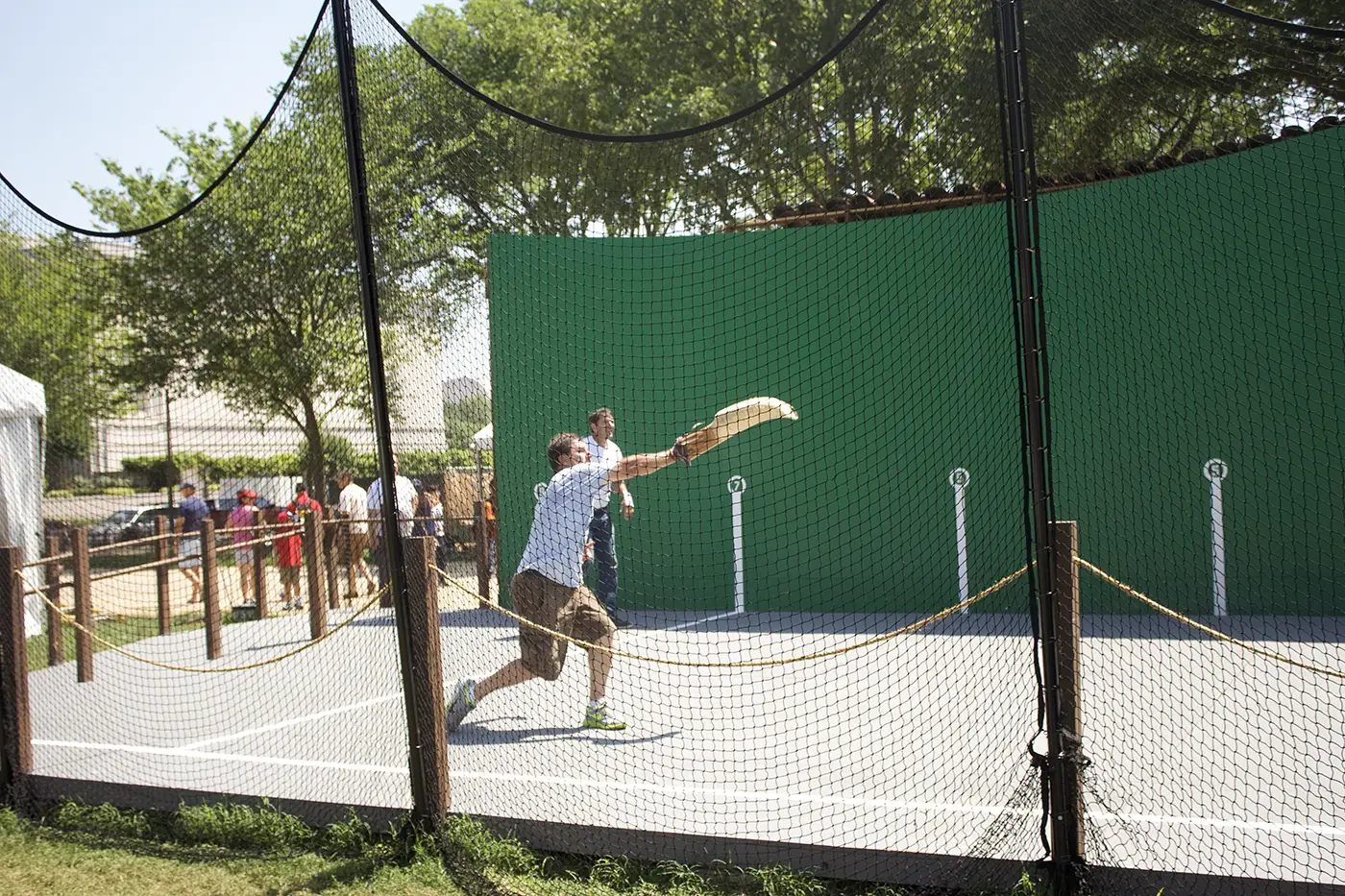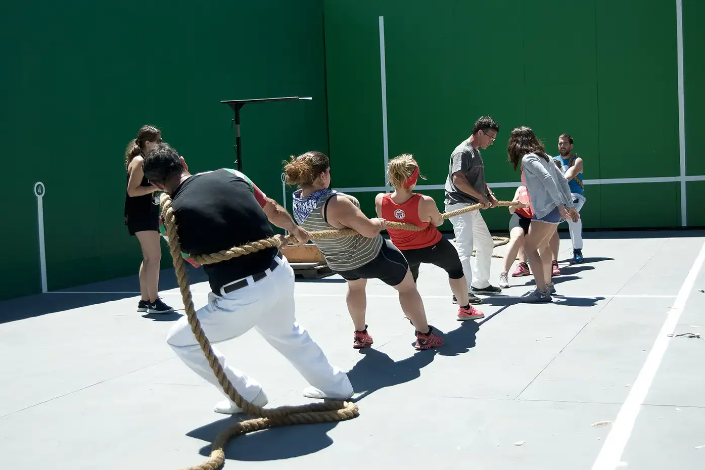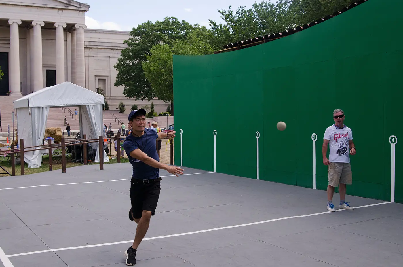 Pilota is a game that creates community. Traditionally, the frontoia (handball court) is in the center of town and acts as a gathering place. Basques come to the frontoia not only to play, watch, and even bet on pilota games, but to enjoy communal meals, hold herri kirolak (rural sports) competitions, and watch dance performances. Just like in Basque communities around the world, the Festival built a frontoia to be the center of the Basque program.