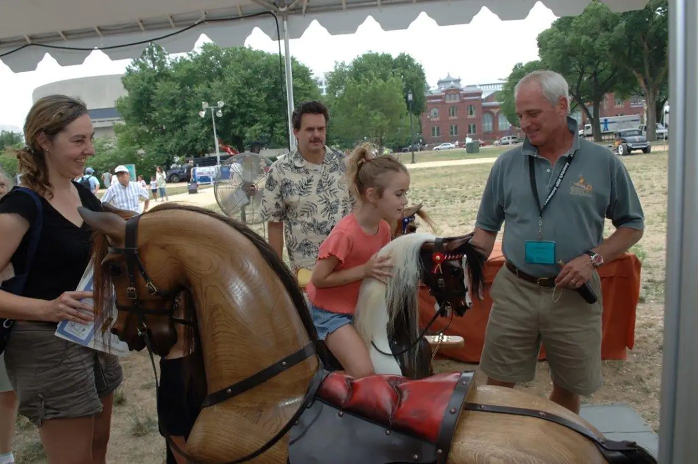 The brothers brought some horses to the Festival and also worked on a new one, said to be a dappled grey. Although not finished, the horse was ceremonially presented to the Center where it draws visitors down to the Festival director’s office—even if its dappled coat can’t yet be seen.