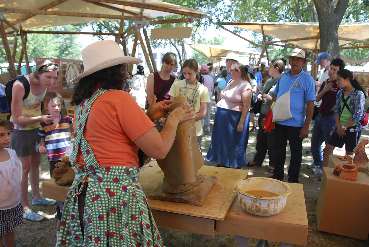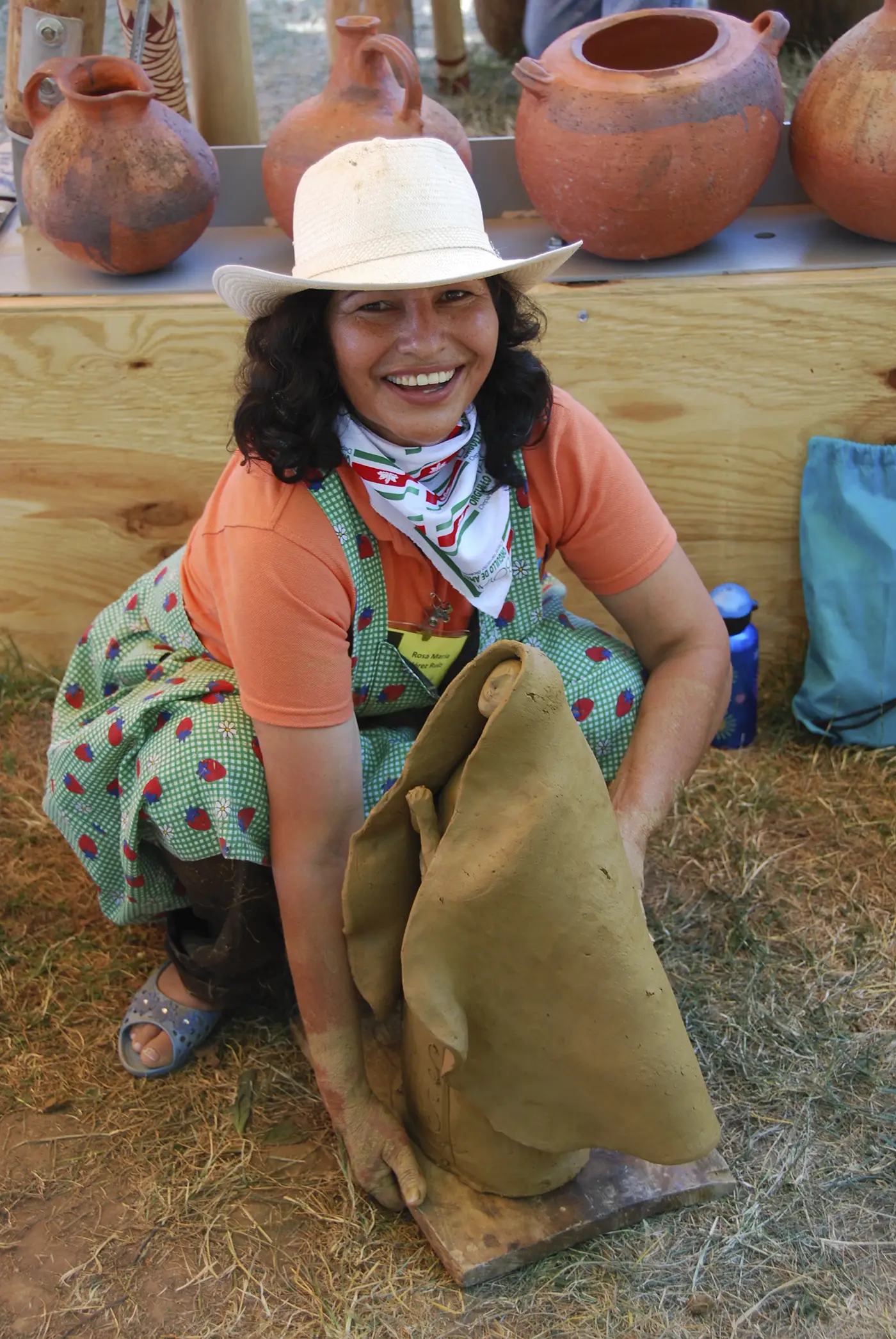 At the 2011 Folklife Festival’s Colombia: The Nature of Culture program, Rosa hand-molded figures from Ráquira clay for the visitors who would congregate around her. As usual, she looked to her surroundings for inspiration: when it was time to decorate the skirt on the figure shown here, she adorned it with pebbles she found on the pathway near her presentation area. The result is fondly called the “Virgin of the Mall” and was a welcome addition to the Center’s collection, marrying Rosa’s traditions and techniques with the environment of the National Mall.